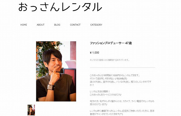 Takanobu Nishimoto tem 47 anos e é o fundador do novo serviço japonês que consiste em alugar um homem de meia idade (ossan em japonês) para que ele basicamente te faça companhia. Ex-estilista e produtor executivo de moda, trabalhou em lojas de departamento no Japão e nos Estados Unidos e também chegou a ter sua própria coluna em um jornal dando conselhos de relação para mulheres. Nishimoto teve a idéia de fundar essa empresa de serviços quando escutou japonesas mais novas criticando sua aparência por causa da sua idade. Ao invés de se envergonhar, decidiu usar sua expêriencia para fins lucrativos. Agora as mesmas garotas lhe pagam para que ele lhes façam companhia, as apoie emocionalmente, dê conselhos amorosos, de moda ou qualquer coisa do tipo por ¥1000 (25 reais) por hora. Ao contrário do que muitos pensam ao dar de cara com essa matéria, Nishimoto tem uma apólice rígida em qual proíbe qualquer tipo de contato físico com seus clientes. Seu serviço é oferecido online e funciona como o aluguel de qualquer outro produto: é só acessar o site e reservar data, local e horário.